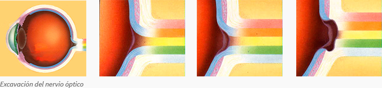 El daño se inicia en las partes periféricas del campo visual y, si no se trata, progresa hasta producir una visión en túnel y en última instancia, ceguera.