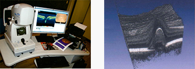 Es un corte óptico de la retina que permite estudiar las distintas capas de células, como lo realiza el microscopio en las preparaciones anatómicas. Es la última tecnología adquirida para estudiar la macula y la retina. Su característica tridimensional permite evaluar adecuadamente tracciones en la retina, edema, acumulación de líquidos formaciones de venas y arterias anormales y perdida de sustancias.
