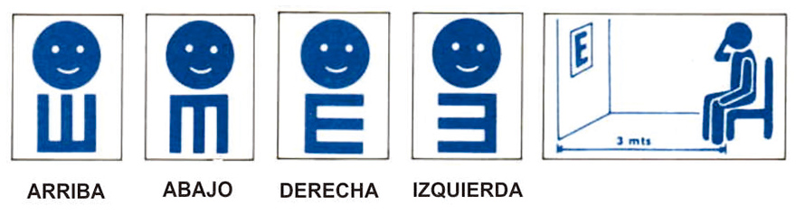 comenzando por la más grande y moviéndose hacia abajo, hacia la más pequeña hasta donde la vista del niño le permite distinguir.